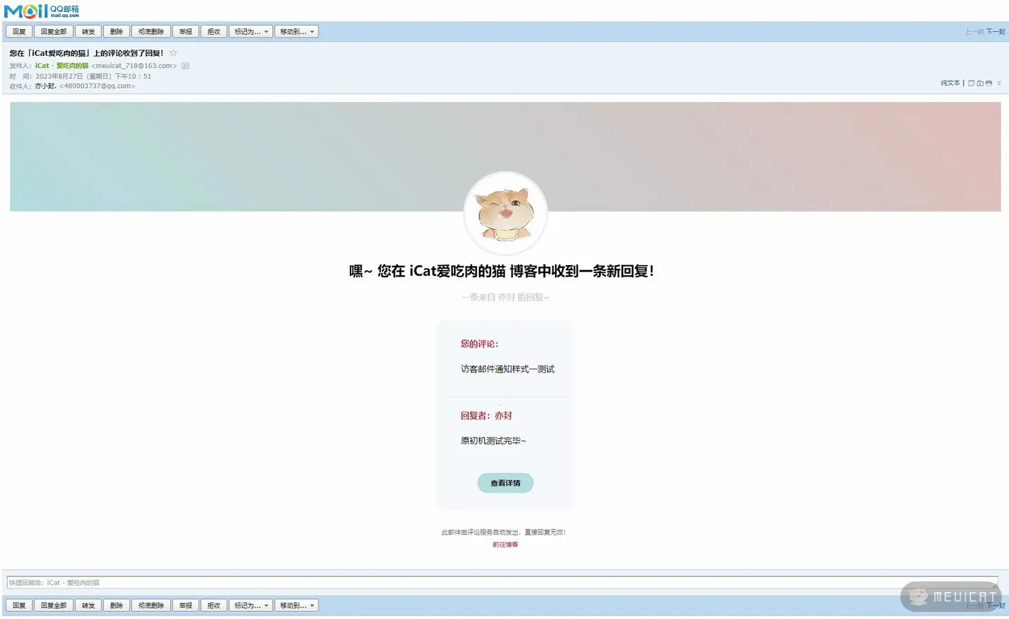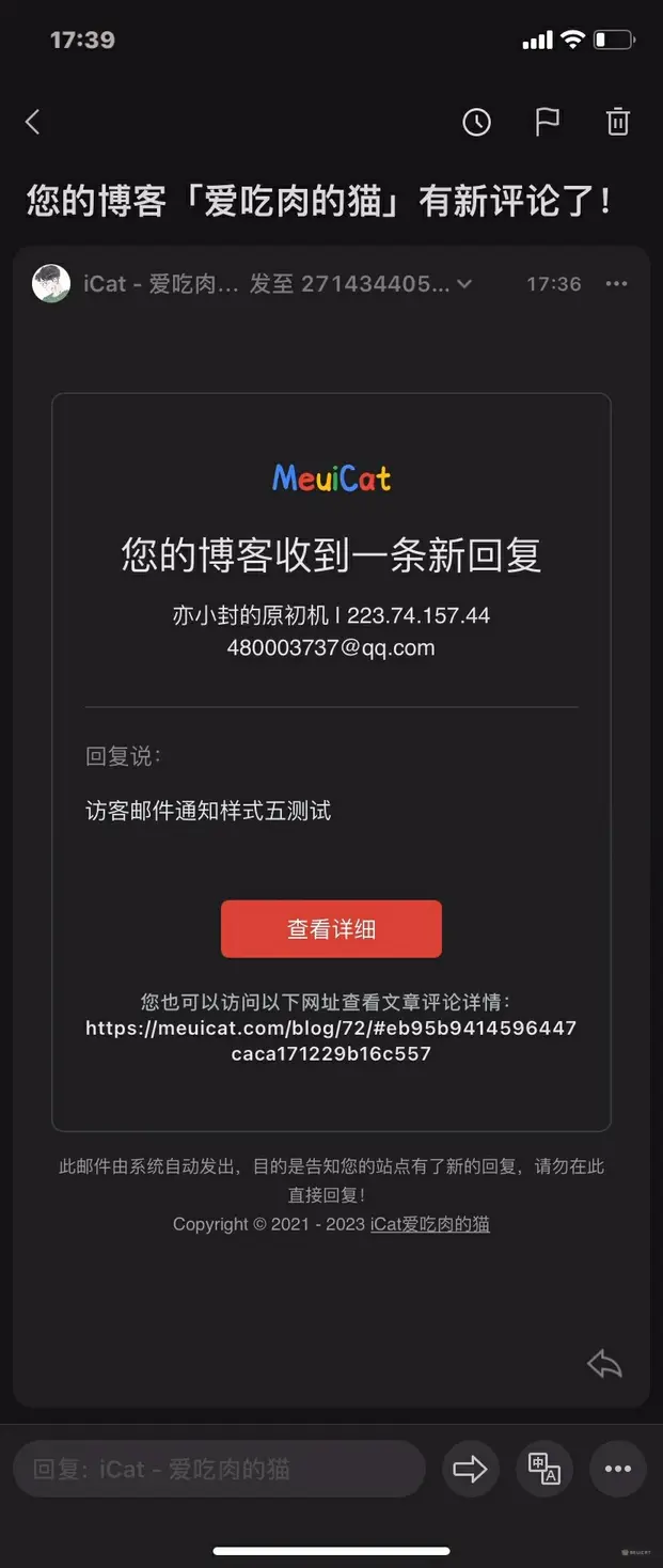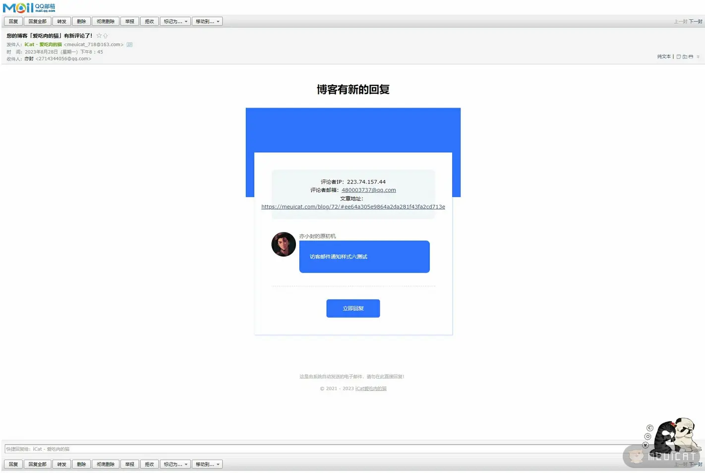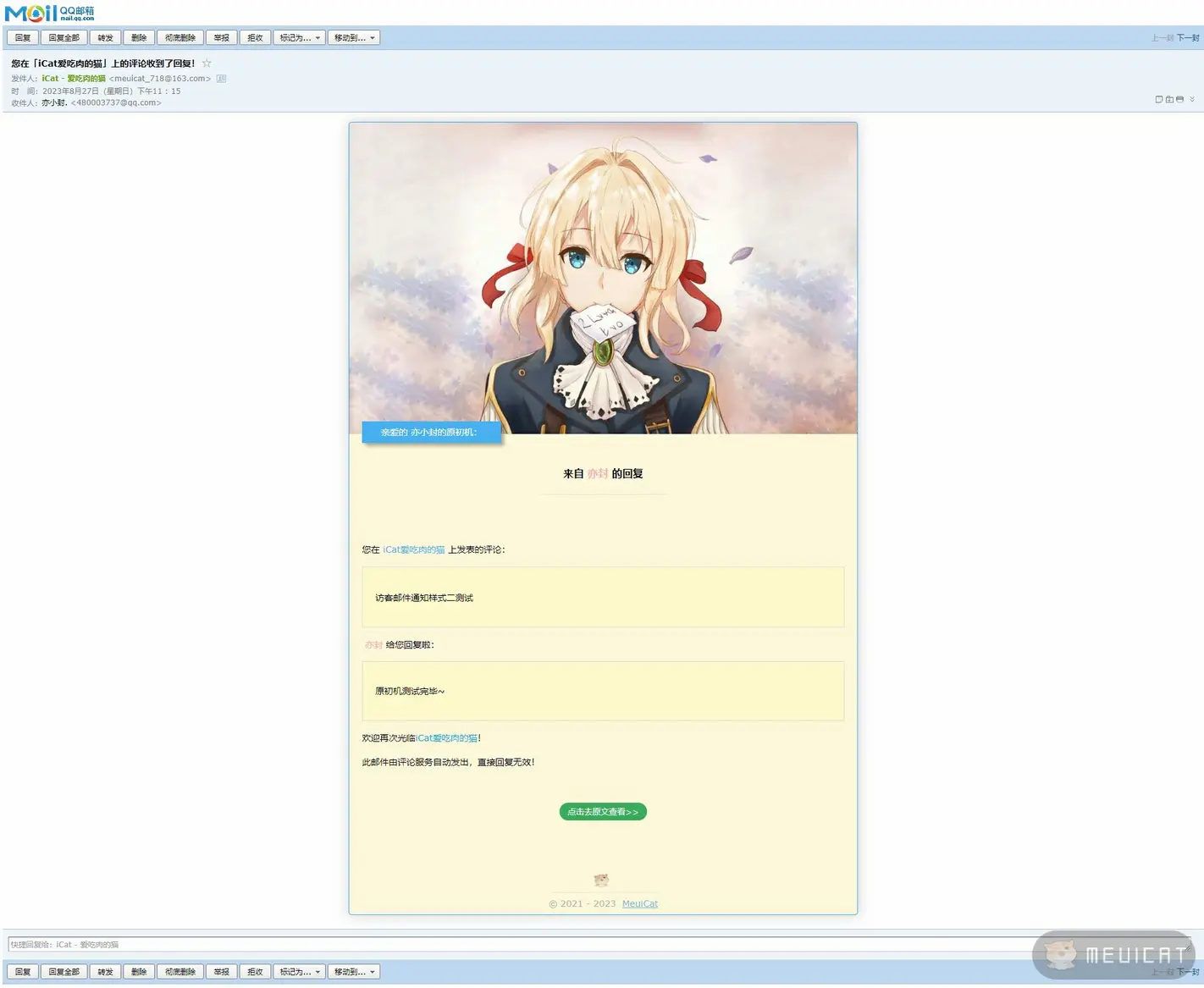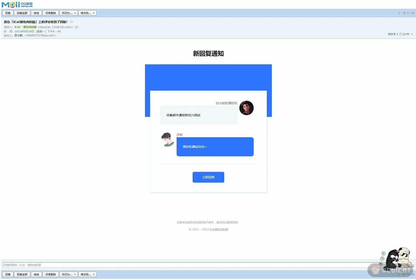 此文章版权归 MeuiCat 所有,完整转载,请注明来源!前些时间,@理随 来找我,问我有没有其他样式的Twikoo邮件模版,也是一直鸽了许久,没空弄。