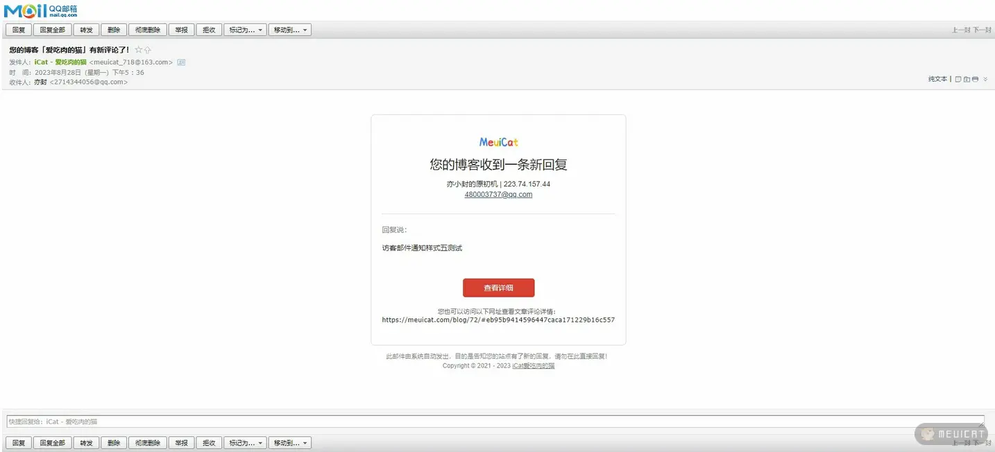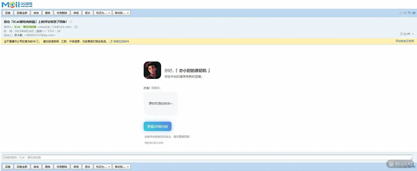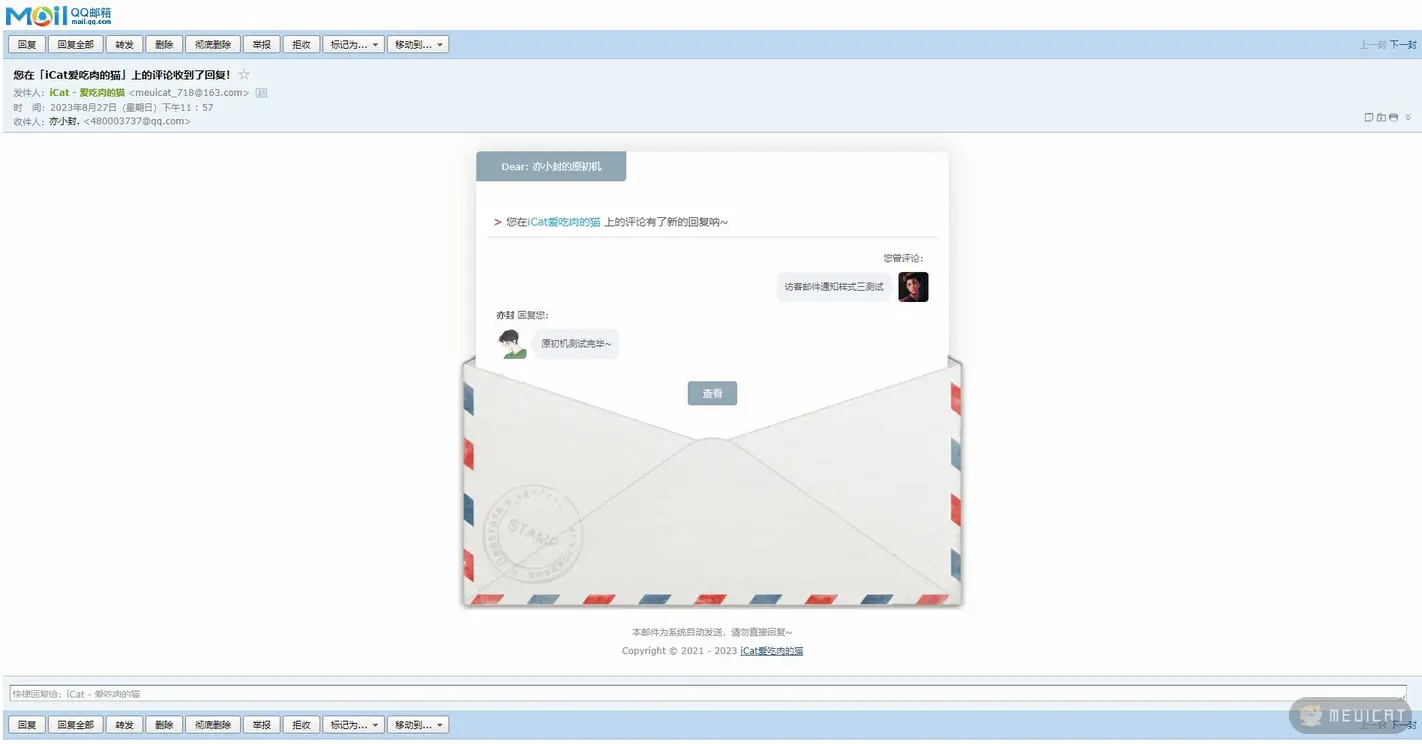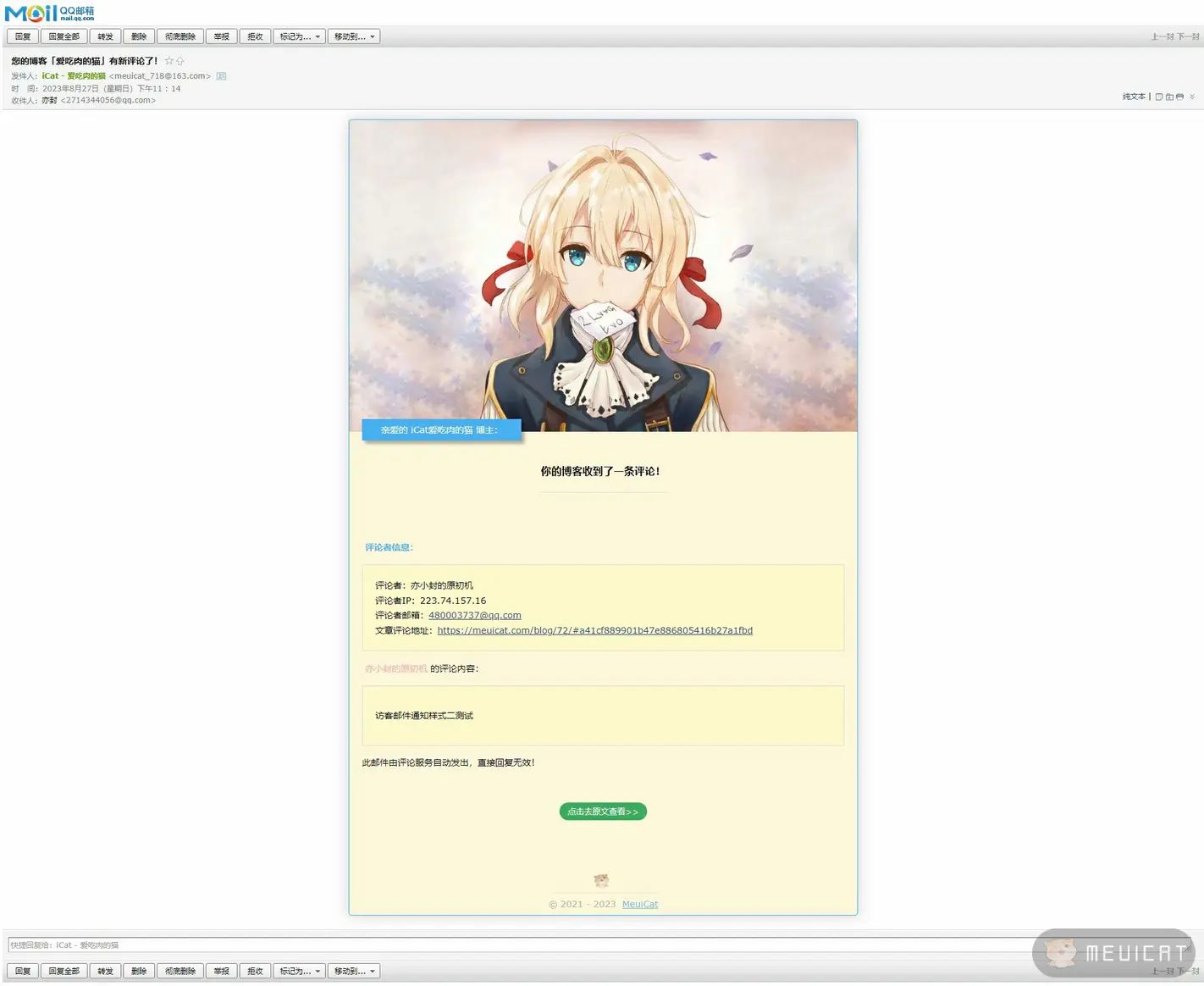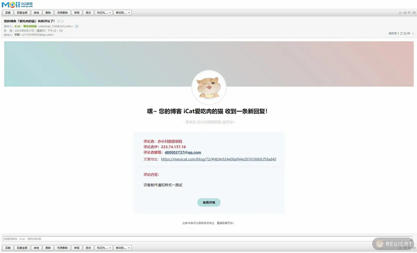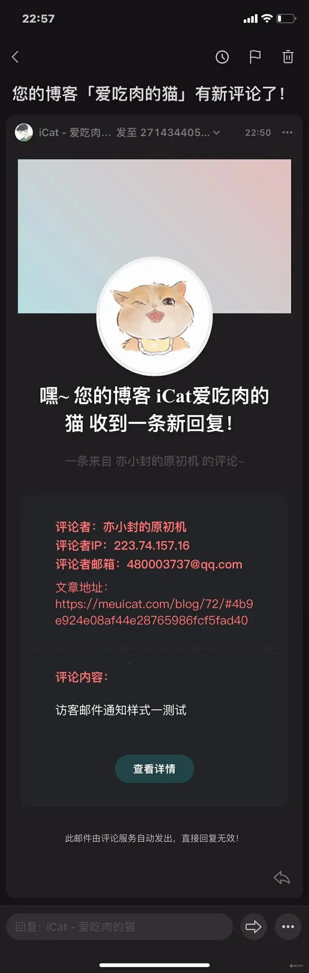 此文章版权归 MeuiCat 所有,完整转载,请注明来源!前些时间,@理随 来找我,问我有没有其他样式的Twikoo邮件模版,也是一直鸽了许久,没空弄。
