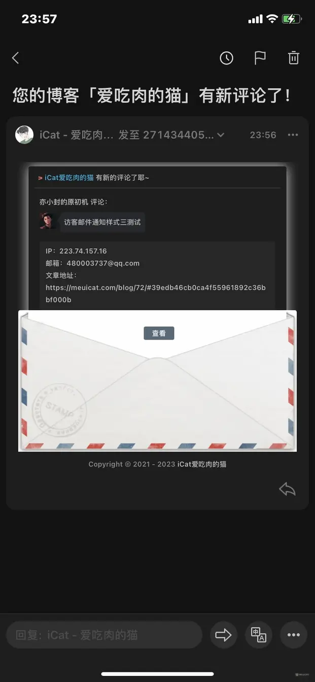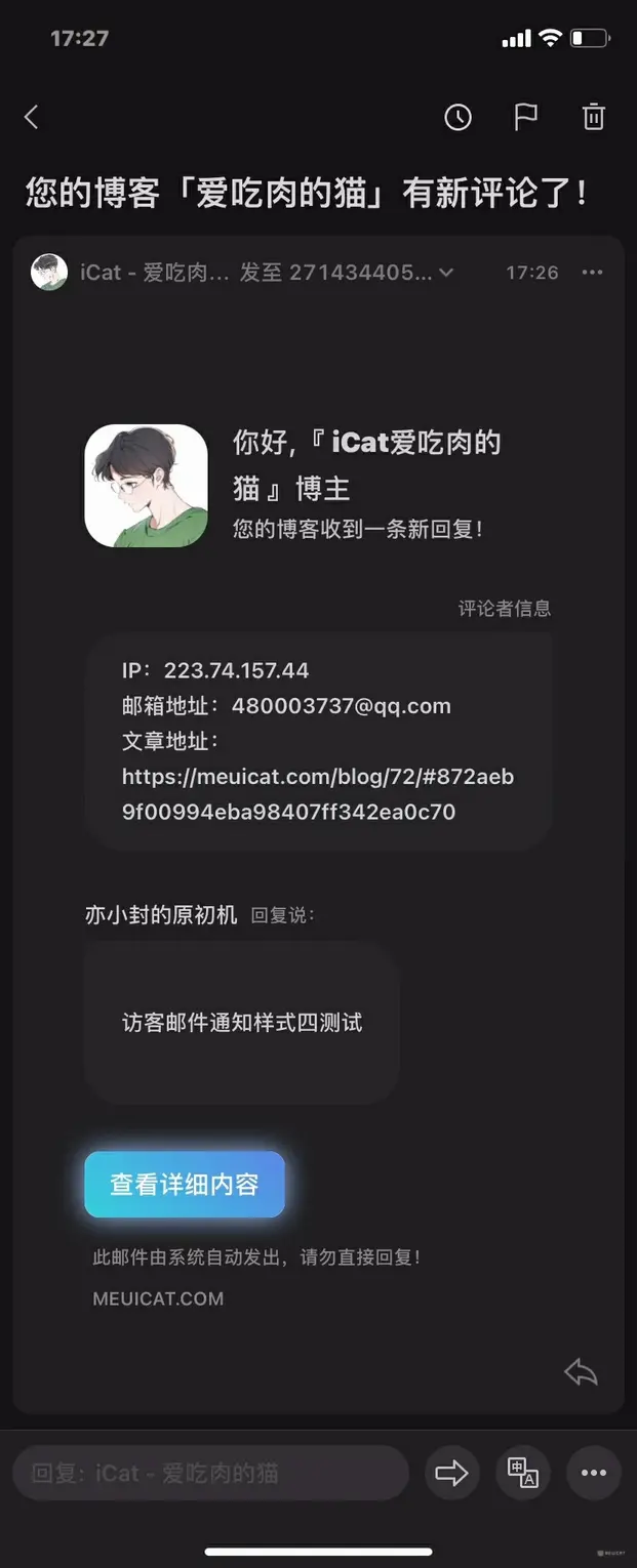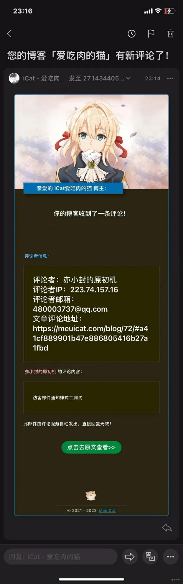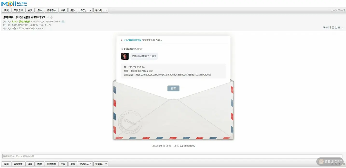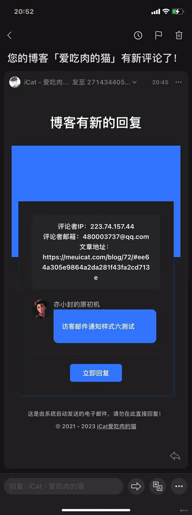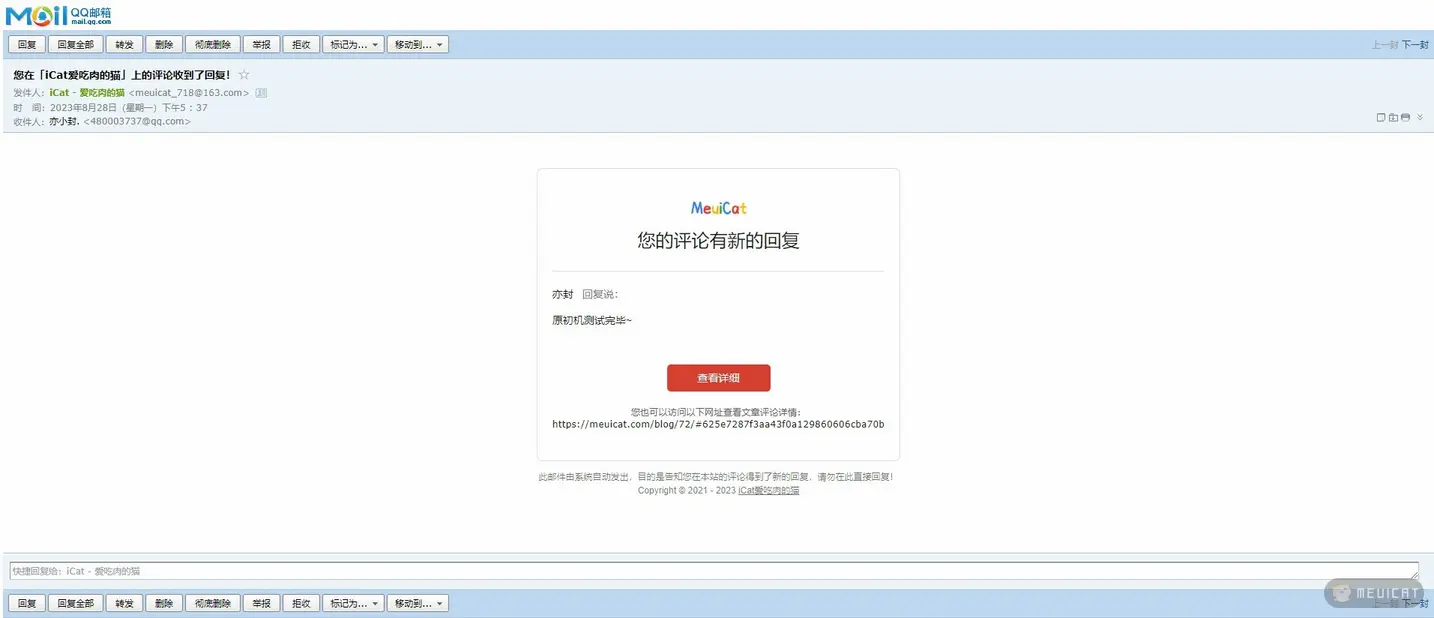 此文章版权归 MeuiCat 所有,完整转载,请注明来源!前些时间,@理随 来找我,问我有没有其他样式的Twikoo邮件模版,也是一直鸽了许久,没空弄。